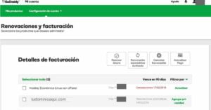 Espero que no tengas que cancelar el servicio y si lo vas a hacer, que sea porque vas a cambiarte a un hospedaje de mucha más capacidad porque el actual no aguanta la cantidad de visitas y ventas que estés teniendo. Pero si decides cancelar, sólo debes ingresar a tu cuenta en GoDaddy y buscar la opción “Configuración de cuenta” o “Renovaciones y facturación”. Seleccionas el producto a cancelar, y click en “Cancelar renovación”.